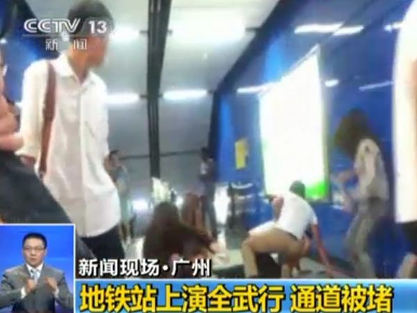 實拍:廣州地鐵站上演全武行 通道被堵