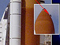 “哥倫比亞”號航天飛機在發射升空過程中,一塊手提箱大小的絕緣泡沫從主燃料箱脫落后砸中飛機左翼,并造成上述部位隔熱瓦破損。當航天飛機返回地球的過程中,超高溫氣體從缺口部位乘虛而入,最終導致機體因溫度過高而解體,7名宇航員在勝利前夕悲劇性殉職。