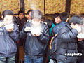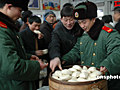 回鄉旅客上海站喝熱粥