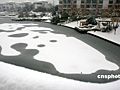 南京花神湖出現冰上雪