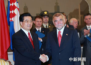 圖:胡錦濤與克羅地亞總統(tǒng)梅西奇舉行會談