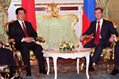 中國國家主席胡錦濤與俄總統(tǒng)梅德韋杰夫會談