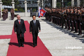 圖:克羅地亞總統(tǒng)梅西奇舉行儀式歡迎胡錦濤到訪
