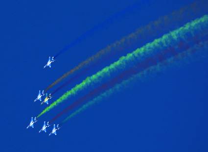 11月上旬,為慶祝人民空軍成立60周年,空軍將安排空軍八一飛行表演隊和空軍跳傘運動大隊向社會進行飛行和跳傘表演。八一飛行表演隊正加緊訓練迎接慶典……
