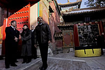 布什 任期之內4次訪問中國。2008年8月8日出席北京奧運開幕式,成為首位在任內參加在他國舉辦的奧運開幕式的美國總統。 |