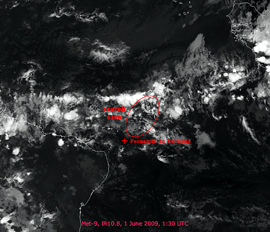圖:衛星圖片顯示法航失蹤客機殘骸所處的位置