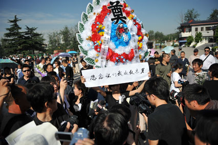 圖:中國傳媒大學學生手捧白花送別師兄羅京