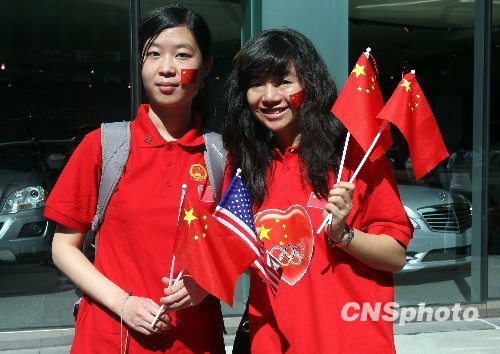 圖:旅美中國學生紐約街頭歡迎胡錦濤訪美