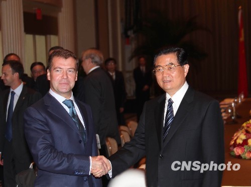 圖:胡錦濤會見俄羅斯總統梅德韋杰夫