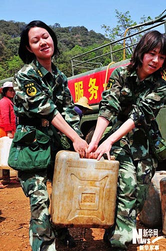 組圖:廣西旱區的送水女兵