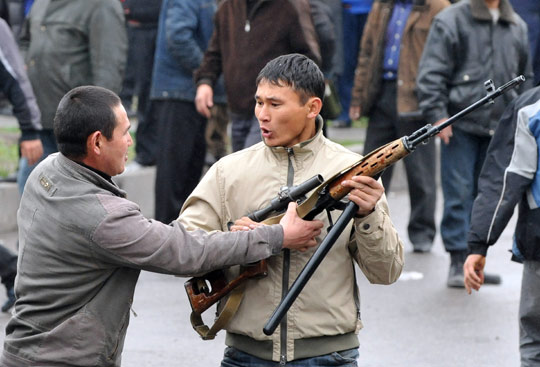 吉爾吉斯斯坦大規模騷亂 示威者手持槍支