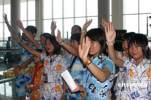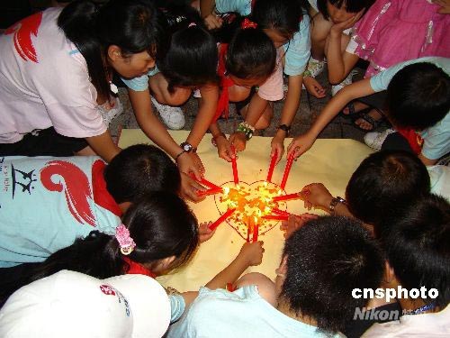 圖:四川災區孩子感恩 深吻心理輔導老師