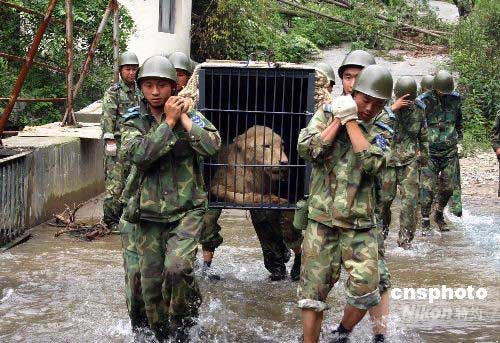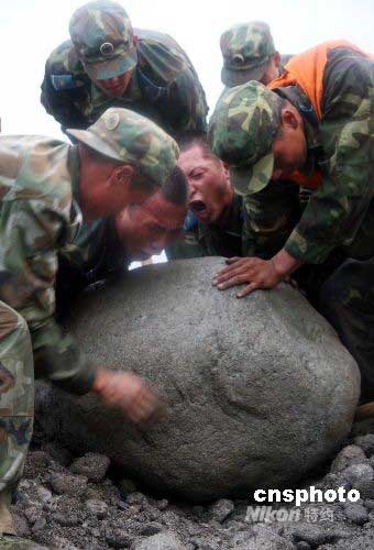 圖:救援官兵成功封堵綿遠河大堤潰口