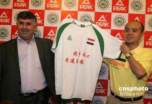 圖:伊拉克隊著“愛心球衣”聲援中國災區