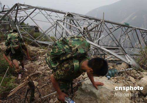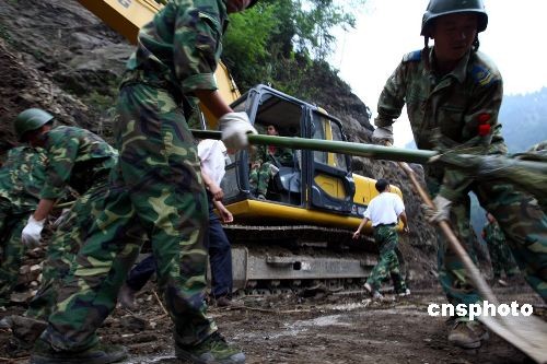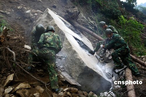 圖:武警工程兵冒險搶修"大熊貓生命之路"