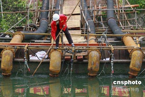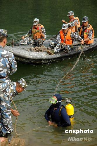 圖:海軍陸戰隊“蛙人”在震區危險水庫排水減壓