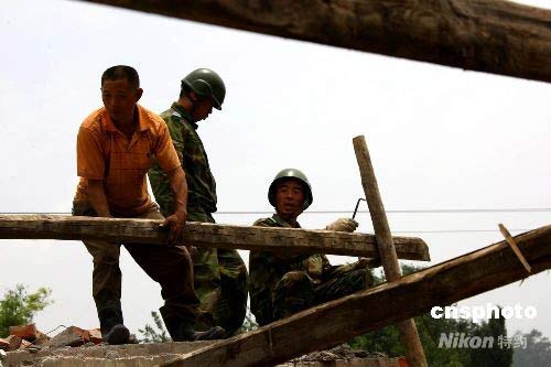 圖:中國空降兵四川震區幫民眾重建家園