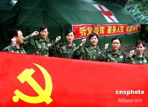 抗震救災中表現出色的“80后”女醫療隊員入黨