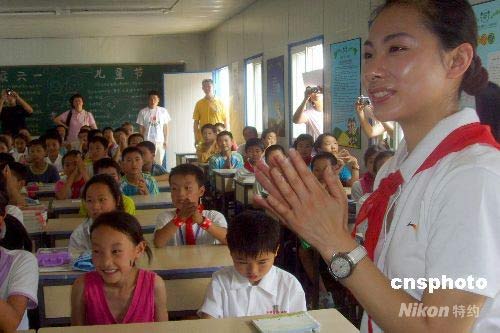 圖:李寧、劉璇等奧運冠軍慰問災區兒童