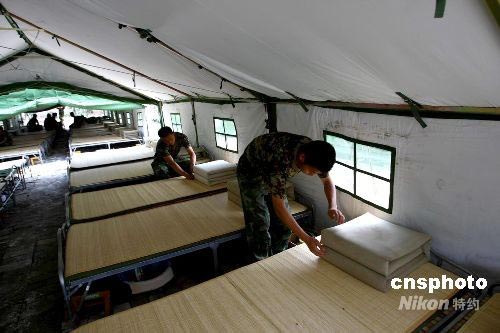 圖:解放軍官兵四川震區的帳篷生活
