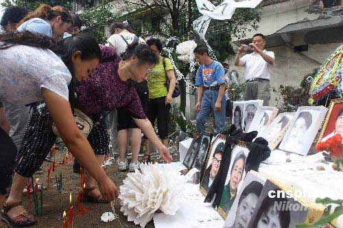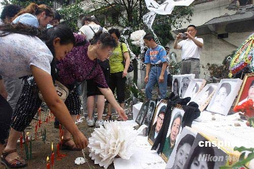 圖:志愿者祭奠北川中學遇難學生