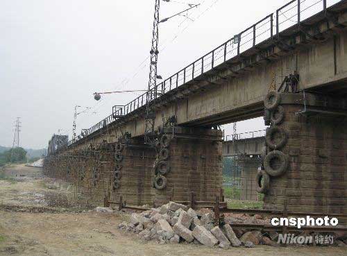 圖:綿陽鐵路橋嚴陣以待唐家山堰塞湖泄流