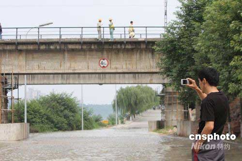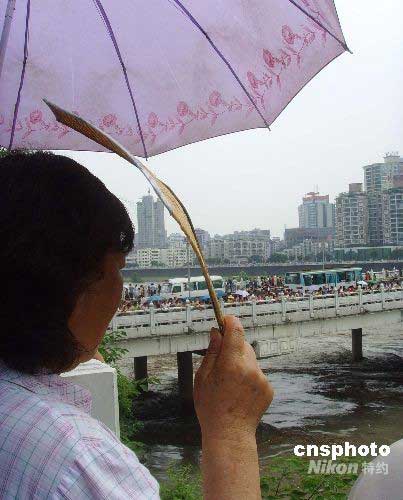 圖:上萬綿陽市民涌向河堤探望洪水水勢