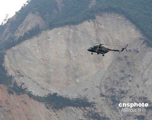 圖:第二批飛機殘骸由直升機緊急運往成都