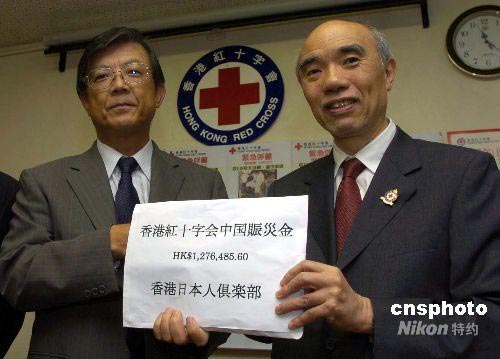 圖:旅居香港的日本僑民捐款賑濟四川災區
