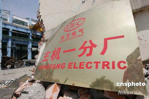 圖:東方汽輪機廠清理災后廠房準備重建