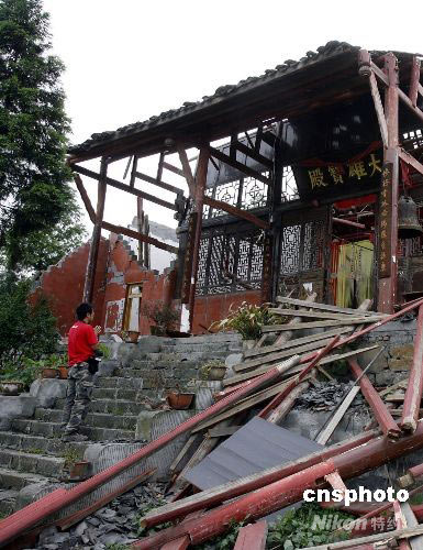 圖:汶川地震使都江堰二王廟損毀嚴重
