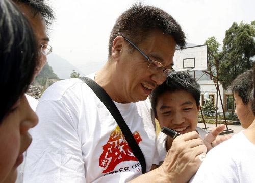 圖:香港藝員吳孟達到地震災區四川什邡