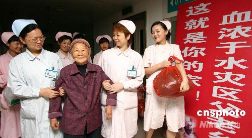 圖:地震災區百歲老人傷愈返家鄉