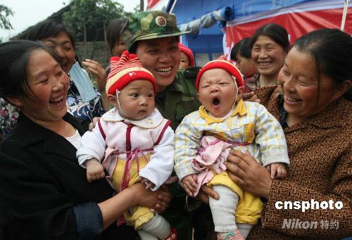 圖:四川震區羌族民眾夸贊解放軍