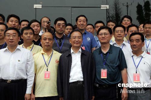 圖:溫家寶唐家山堰塞湖搶險指揮部看望專家組成員