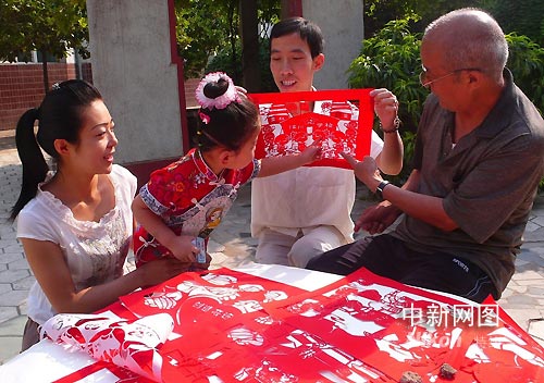 圖:山西侯馬民間藝人創作抗震救災剪紙作品