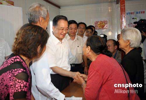 溫家寶視察慰問綿陽涪城區居民疏散安置點