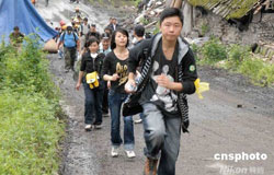 重慶志愿者跑步前往彭州地震災區