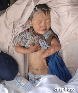 北川縣臨時醫療點內的受傷兒童
