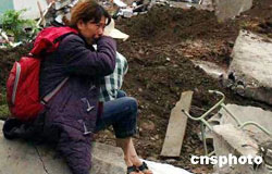 一位失去親人的災民嚎啕大哭