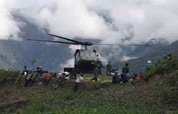 首批救援直升機成功降落此次地震震中汶川縣城