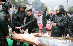 武警在地震重災區北川縣現場救援