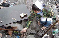 武警官兵全力搜救北川中學被困學生