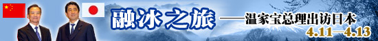 應日本首相安倍晉三邀請,中國總理溫家寶于2007年4月11日至13日對日本進行正式訪問。溫家寶表示,如果說日本首相安倍晉三2006年10月訪問中國是一次“破冰之旅”,那么“我希望我4月份對日本的訪問將成為一次‘融冰之旅’!薄