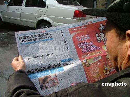 11月15日,媒體透露,國(guó)家林業(yè)局4位專家到達(dá)鎮(zhèn)坪縣,開始對(duì)華南虎存在真實(shí)性的考察。