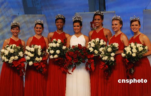 美國第九十屆玫瑰皇后和公主的加冕儀式,十月二十五日在巴沙迪那玫瑰宮舉行。高中十七歲少女吉布斯喜戴由鉆石珍珠裝飾的價值十萬美元皇冠,六名少女各頭戴價值四萬五千美元的公主冠。她們將在2008年元旦第一百一十九屆玫瑰花車游行時,喜迎北京奧運花車。美國一百多年來的玫瑰公主選拔超脫于選美活動,在于注重少女的社區活動和學業成績以及演講能力,推崇標準的清純“鄰家女孩”。中新社發 賈國榮 攝