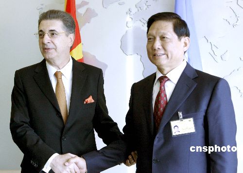 中共中央政治局委員、北京市委書記、北京奧組委主席劉淇三十一日在紐約聯合國會晤第六十二屆聯大主席克里姆。中新社發 李靜 攝