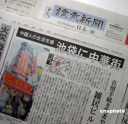 池袋新華人打中國(guó)文化牌、塑造嶄新中國(guó)形象取得成功。發(fā)行量超過1000萬(wàn)份的日本《讀賣新聞》11月5日?qǐng)D文并茂地的報(bào)道了池袋正在出現(xiàn)新的中華街。據(jù)介紹,越來越多的中國(guó)人匯集池袋,并展開多種經(jīng)營(yíng)的創(chuàng)業(yè)活動(dòng),除了有100多家傳統(tǒng)的中國(guó)飯店以外,池袋還集中了13家華文報(bào)刊,日本首個(gè)星期日漢語(yǔ)角也在池袋。池袋已經(jīng)成為中國(guó)文化傳播、中日兩國(guó)交流最活躍的地區(qū)。中新社發(fā) 段躍中 攝