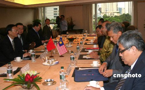 十二月八日傍晚,中國外長楊潔篪(左一)同馬來西亞外長賽義德在吉隆坡東方文華酒店舉行會談,雙方討論了雙邊關系和共同關心的國際和地區問題,就兩國今后合作達成多項共識。中新社發 蘇祥新 攝