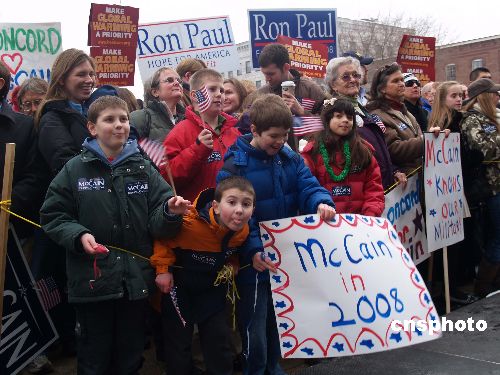 美國新罕布什爾州8日凌晨開始二00八年大選初選,一些美國兒童也加入了助威隊伍。中新社發 余東暉 攝